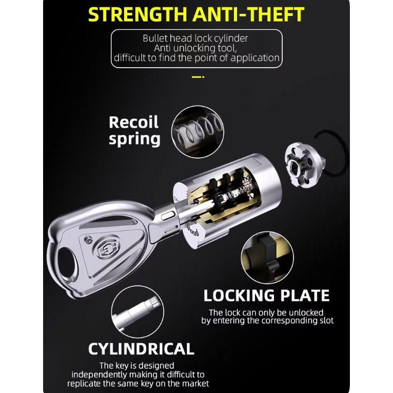 Khoá đĩa báo động nặng 700G chất liệu thép không gi Chià khoá đúc chống gãy, bảo vệ 10 lớp Chế độ hú cảnh báo lên đến 1200hz có pin sơ cua, 4 chìa khóa