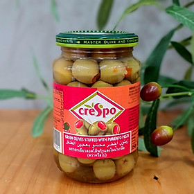 Oliu xanh nhồi ớt ngọt, oliu xanh nguyên trái, oliu xanh không hạt Crespo 370ml