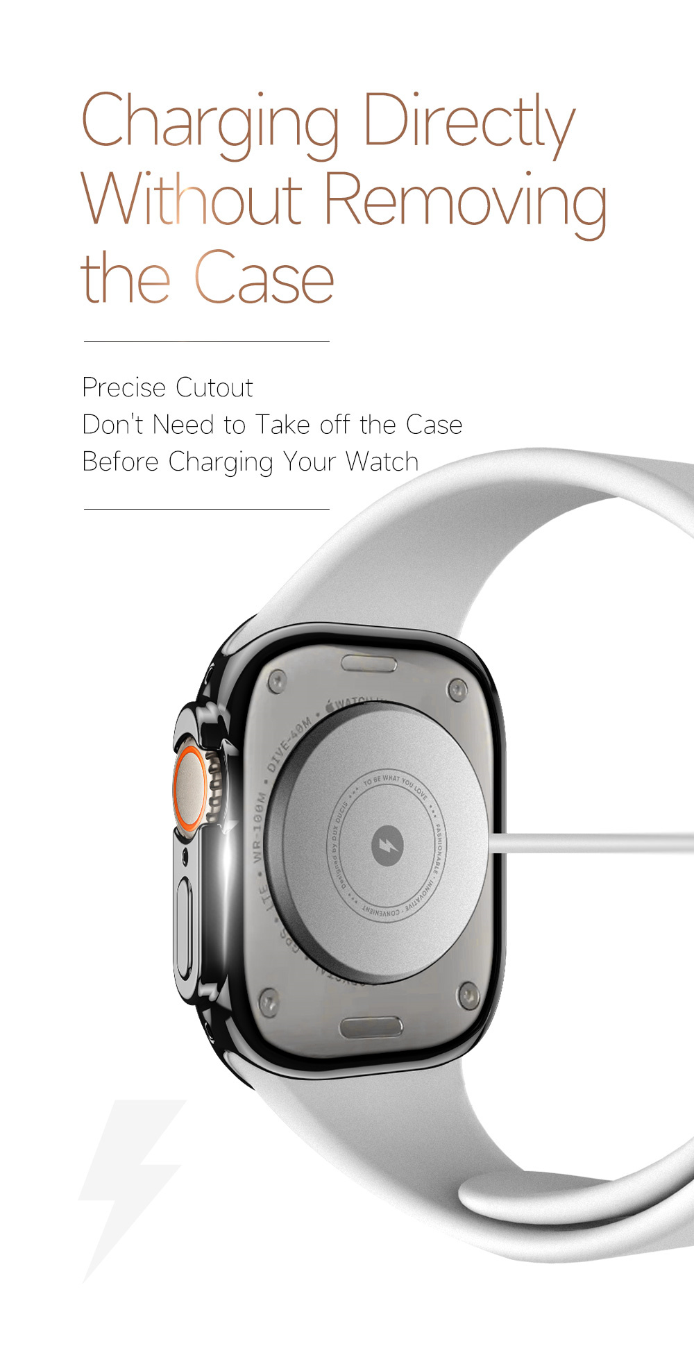Màu sắc: Đen / Bạc Được làm từ PC mạ điện Tương thích với Apple Watch Ultra/ Ultra 2 Nó có thể bảo vệ hoàn toàn đồng hồ của bạn khỏi trầy xước, rơi, vết