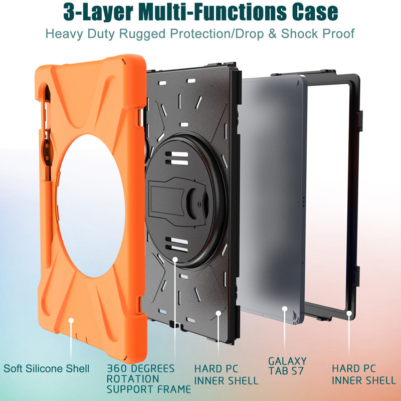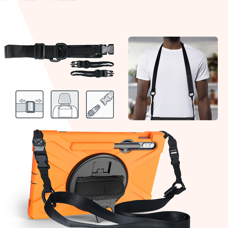 - Ốp lưng Samsung Galaxy Tab S9/S9 FE/S9 Plus/S9 Plus FE/S9 Ultra/Tab S8 Plus/S8 Ultra/S7 Plus chống sốc dựng máy có dây đeo vai và tay