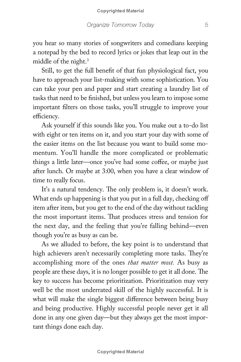 In Organize Tomorrow Today (OTT), two of the top minds in human performance come together to r the pathway to extreme success: Doing more is not the answer, and Selk and Bartow walk you through how to achieve more by doing less.