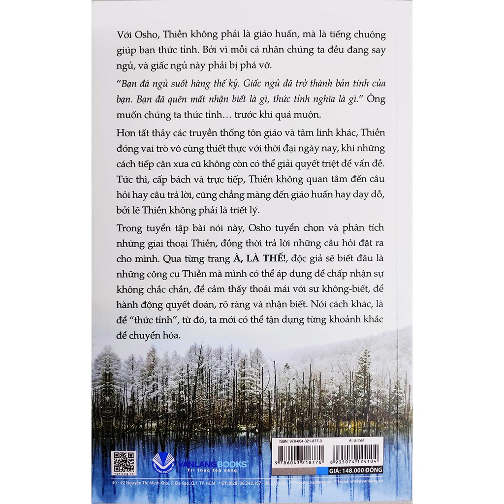 Trong tuyển tập bài nói này, Osho tuyển chọn và phân tích những giai thoại Thiền, đồng thời trả lời những câu hỏi đặt ra cho mình. Qua từng trang À, là thế!, độc giả sẽ biết đâu là những công cụ Thiền mà mình có thể áp dụng để chấp nhận sự không chắc chắn, để cảm thấy thoải mái với sự không-biết, để hành động quyết đoán, rõ ràng và nhận biết. Nói cách khác, là để “thức tỉnh”, từ đó, ta mới có thể tận dụng từng khoảnh khắc để chuyển hóa.