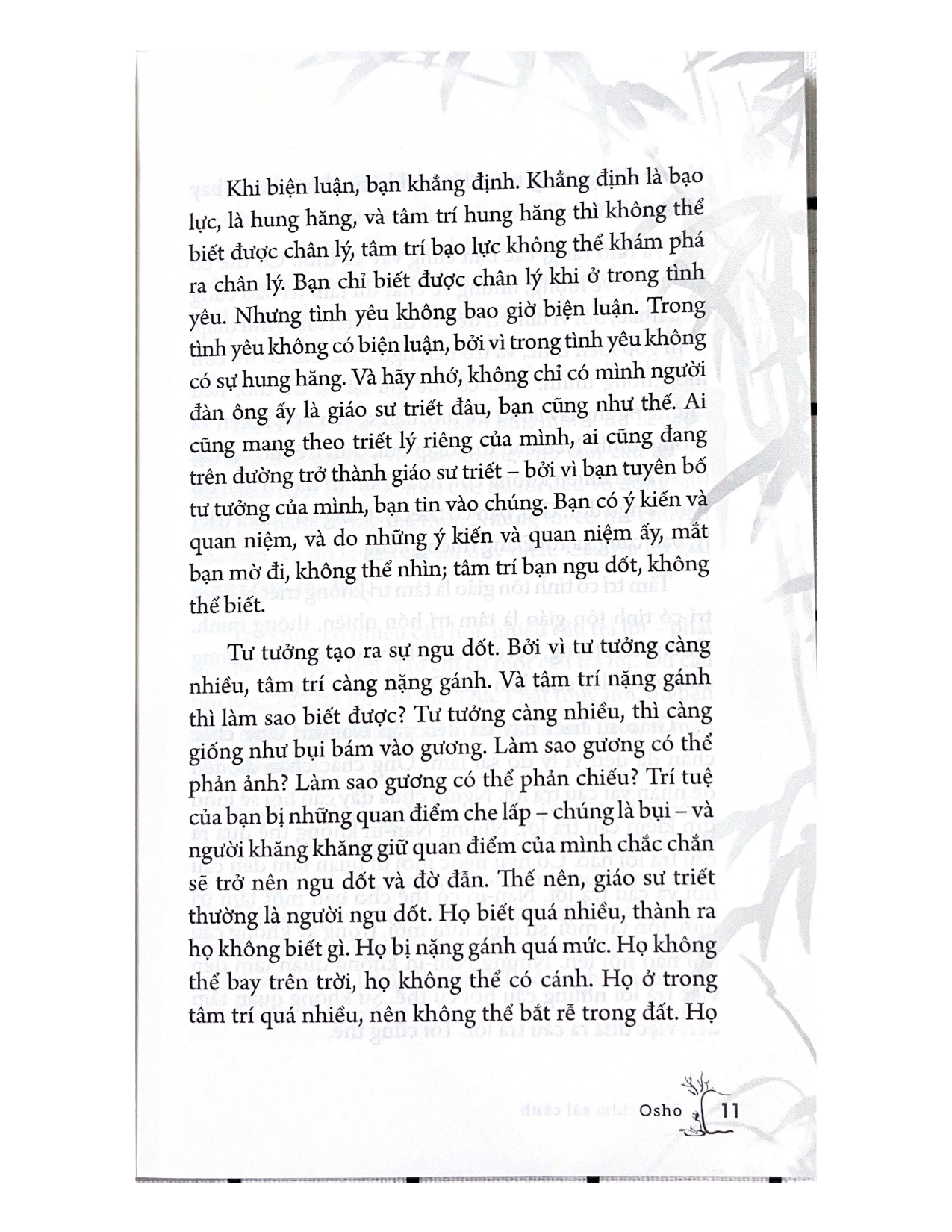 Qua mười một giai thoại kinh điển, từ vị giáo sư trong đầu chứa đầy ý tưởng đến mức không còn có thể học thêm gì khác, cho đến vị tăng đầu bếp giải công án bằng cách đá bình nước, độc giả sẽ nhìn thấy chính mình, bạn bè, thậm chí cả những người nổi tiếng và các chính trị gia phản ánh trong những nhân vật chính của các câu chuyện Thiền thi vị ấy. Ở mỗi chương, theo sau phần thảo luận về giai thoại chính trong chương, Osho cũng trả lời các câu hỏi của khán giả về tình yêu, cuộc sống, các mối quan hệ và công cuộc “truy cầu”. Xuyên suốt NHƯ CHIM SẢI CÁNH, ông nhấn mạnh tầm quan trọng của việc vừa tôn vinh “gốc rễ” trong những niềm vui giản đơn của cuộc sống thường ngày, vừa nuôi dưỡng “đôi cánh” cho ta trải nghiệm sự gắn kết với cái phổ quát, siêu việt và vĩnh hằng