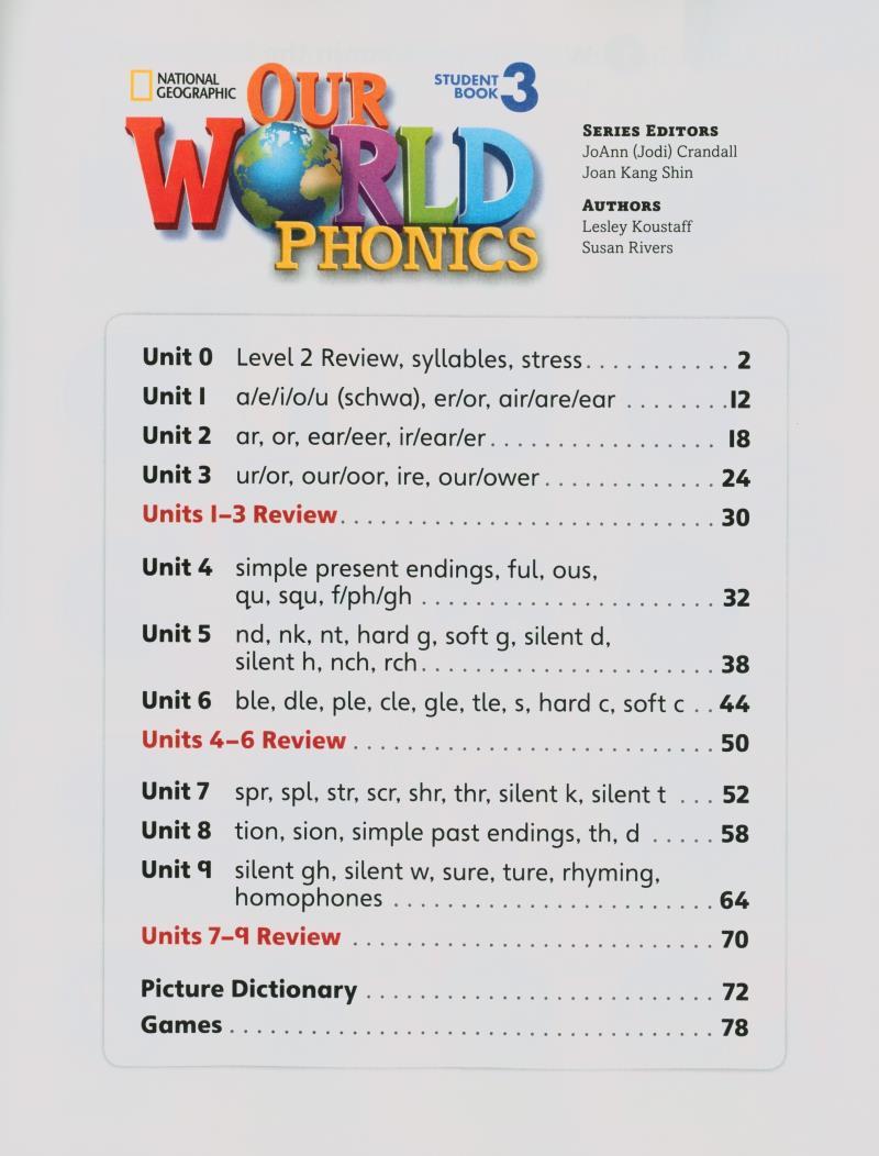 OUR WORLD AME PHONICS 3 STUDENT BOOK & AUDIO CD Our World Phonics introduces young learners to the sounds of English and helps them learn and practice sound-spelling relationships in the English language. It can