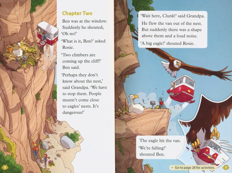 Grandpa takes Ben, Rosie, Alice, and Clunk high in the mountains to study eagles. When they find a nest, the eagles think that Clunk is food! Will Clunk be dinner? And what happens when two climbers find the nest?