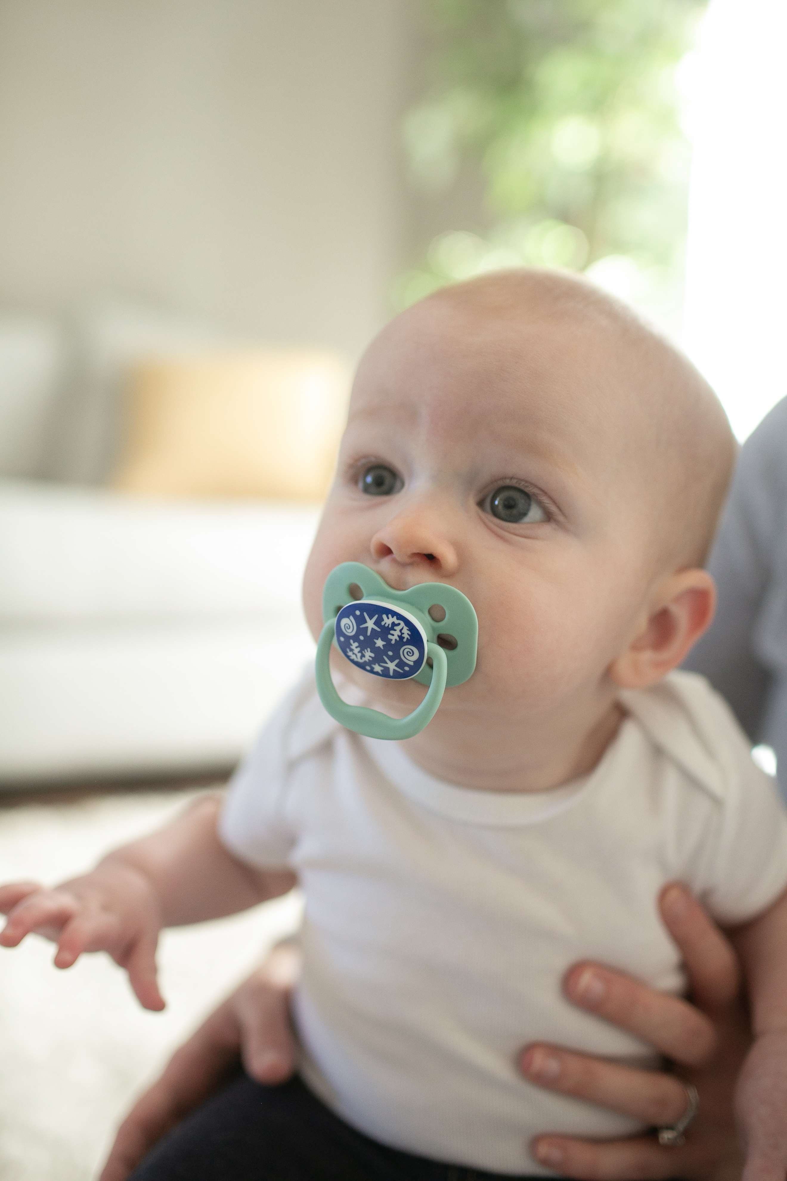 - Ty ngậm sẽ phát sáng trong bóng tối giúp mẹ dễ dàng tìm thấy khi cần