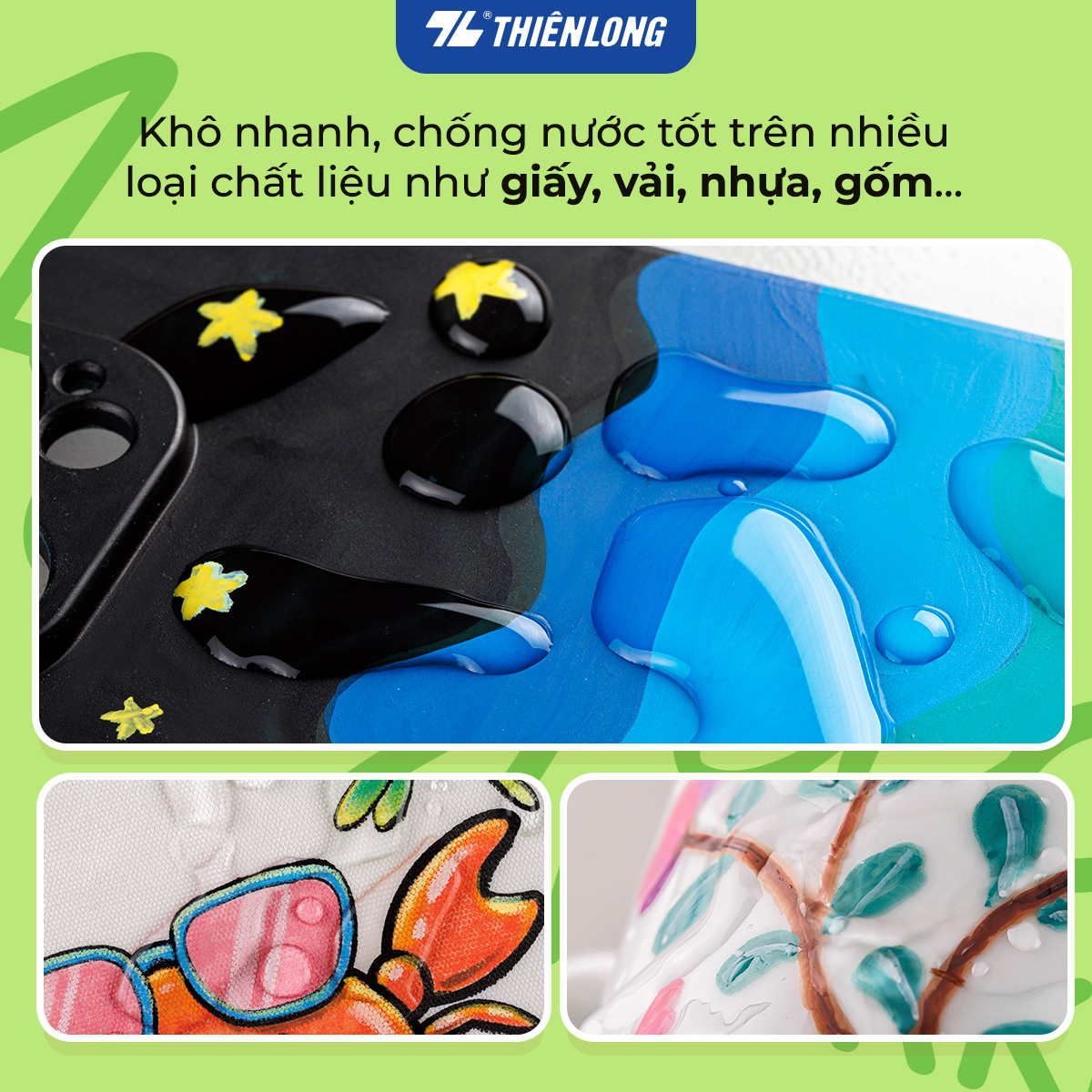 ️ Vẽ được trên các chất liệu: canvas, vải, giấy, gỗ, nhựa, thủy tinh, gốm sứ, kim loại…