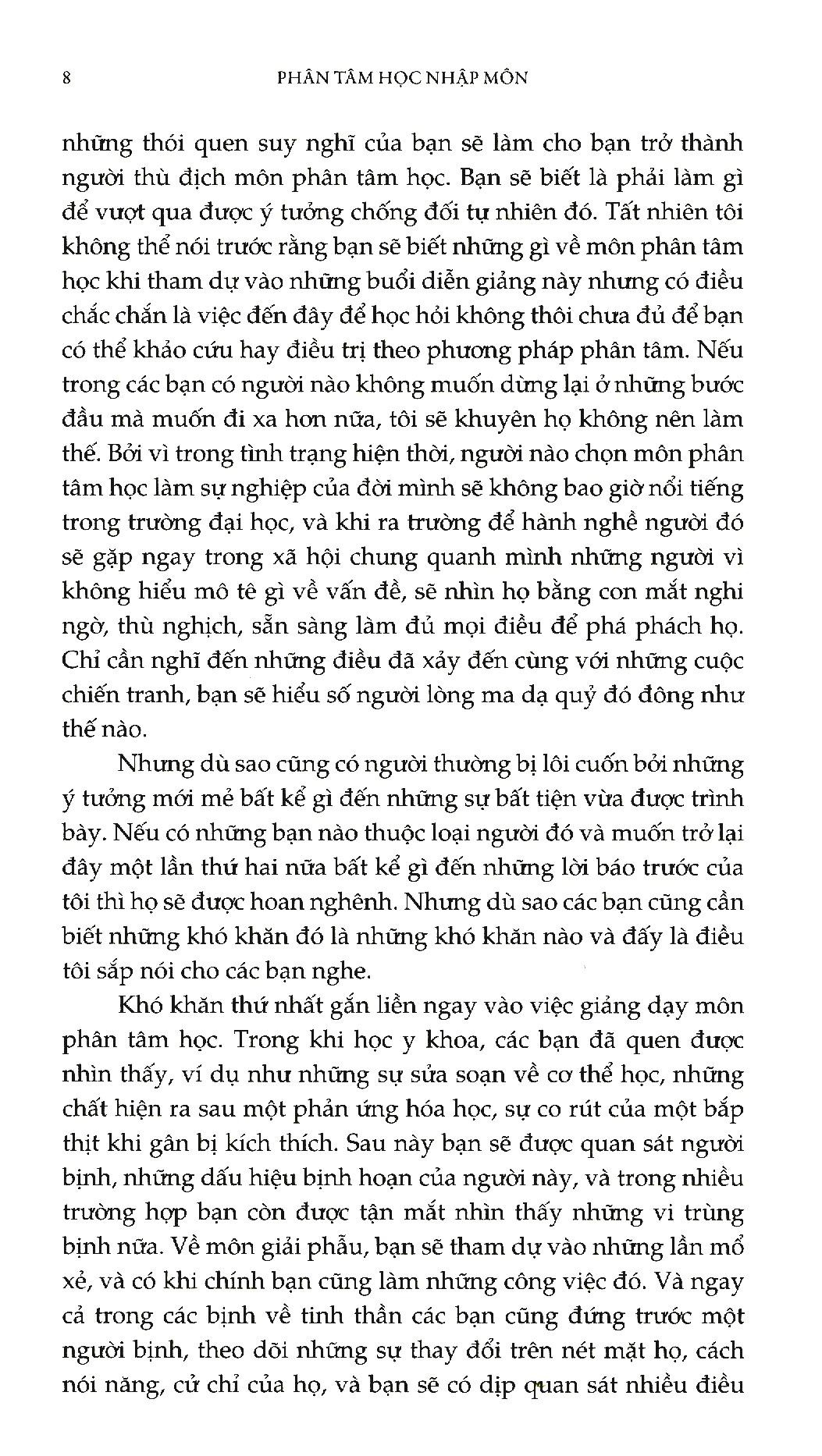 Mua tại TiktokLà một trong những công trình nổi tiếng và được phổ biến rộng rãi nhất của vị bác sĩ thần kinh người Áo gốc Do Thái Sigmund Freud. Mang tính dẫn nhập về phân tâm học, một học thuyết gây nhiều tranh cãi ngay từ thời điểm ra đời (cuối thế kỷ XIX), cuốn sách tập hợp 28 bài giảng của Freud, bao gồm những tri thức và cách tiếp cận căn bản của phân tâm học xung quanh các vấn đề vô thức, những giấc mơ, và các trạng thái bệnh lý thần kinh của con người. Qua công trình này, Freud củng cố và xác lập một phương pháp độc đáo trong nghiên cứu và trị liệu bệnh loạn thần kinh mà ông sáng tạo nên: trị bệnh thông qua thăm dò cõi vô thức của con người.