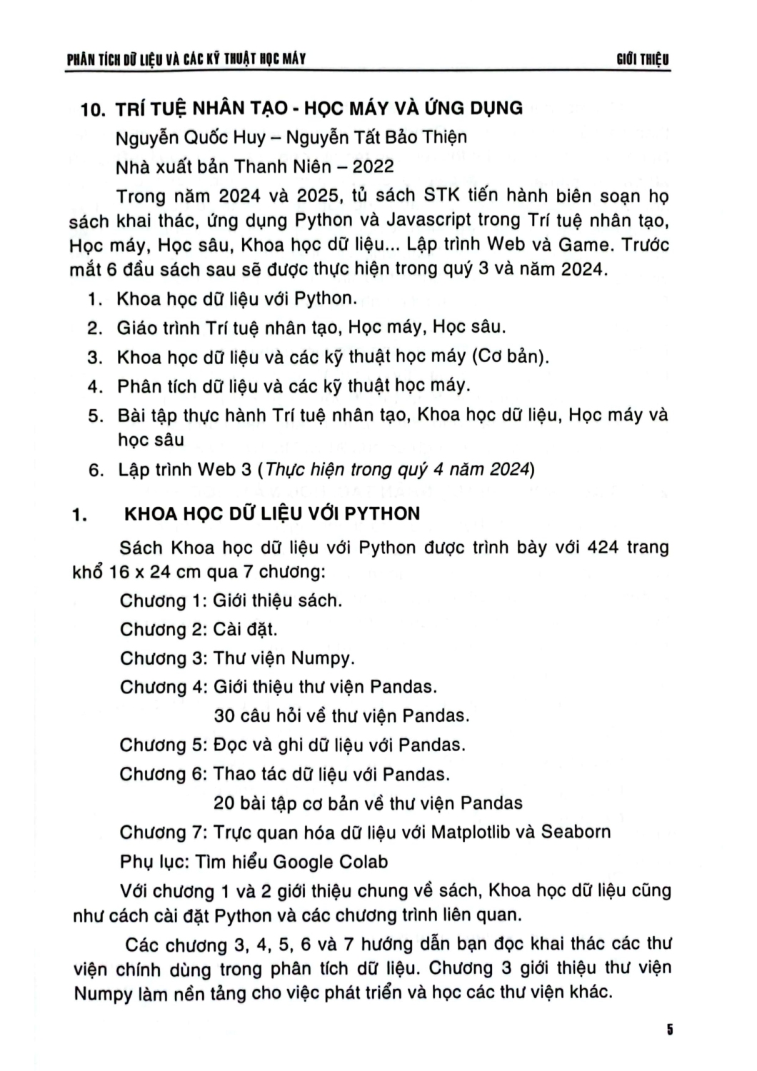 Khoa Học Dữ Liệu Với Python Sách Khoa học dữ liệu với Python được trình bày với 424 trang khổ 16 x 24 cm qua 7 chương và 1 phụ lục: Chương 1: Giới thiệu