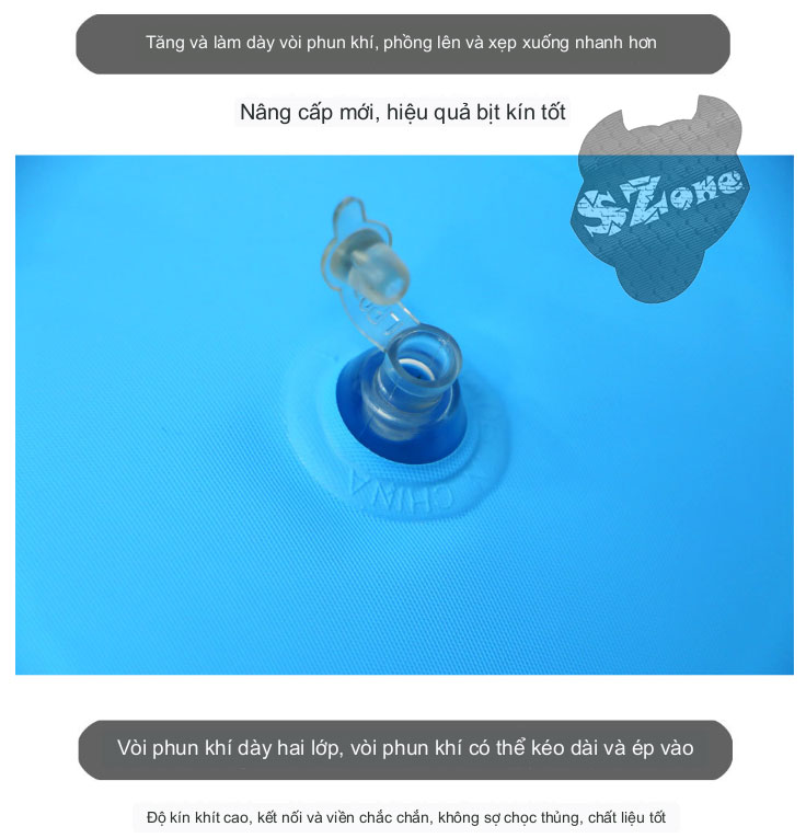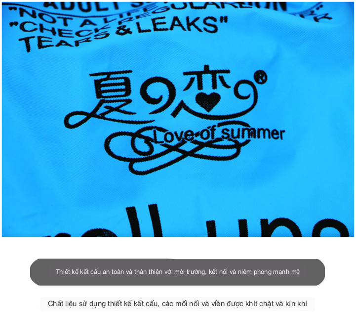 - Chất liệu cao cấp: Được làm từ nhựa PVC chống thấm cao cấp, không độc hại, rất chắc chắn và dễ thổi phồng. Túi khí kép an toàn và thoải mái hơn. Thành trong phẳng thoải mái khi sử dụng.