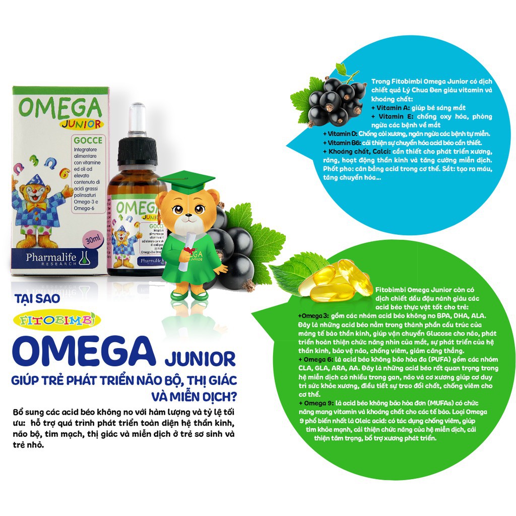 ✨Pharmalife Fitobimbi OMEGA Junior Phát triển não bộ cho bé, tốt cho mắt, Lọ nhỏ giọt 30ml