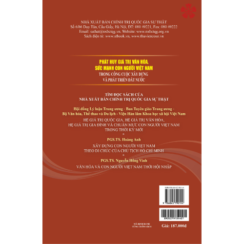 Nhằm giúp bạn đọc có thêm tài liệu tham khảo về những vấn đề nêu trên, Nhà xuất bản Chính trị quốc gia Sự thật xuất bản cuốn sách Phát huy giá trị văn hóa, sức mạnh con người Việt Nam trong công cuộc xây dựng và phát triển đất nước (Sách chuyên khảo) do PGS.TS. Nguyễn Duy Bắc và PGS.TS. Vũ Thị Phương Hậu đồng chủ biên.