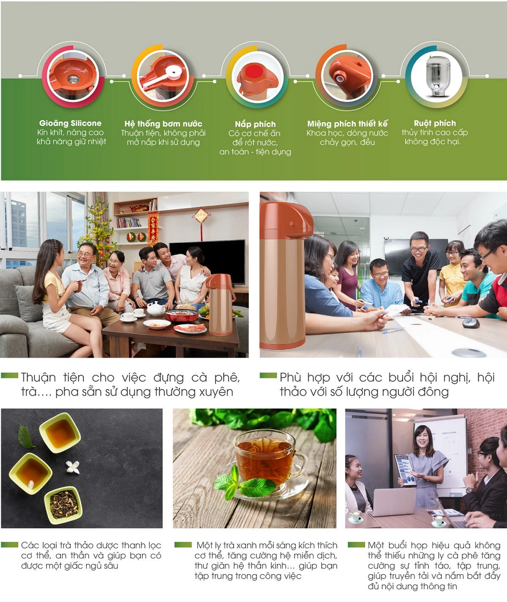 Hướng dẫn sử dụng phích inox cần bơm - An toàn & Ttiện lợi cho người lớn tuổi