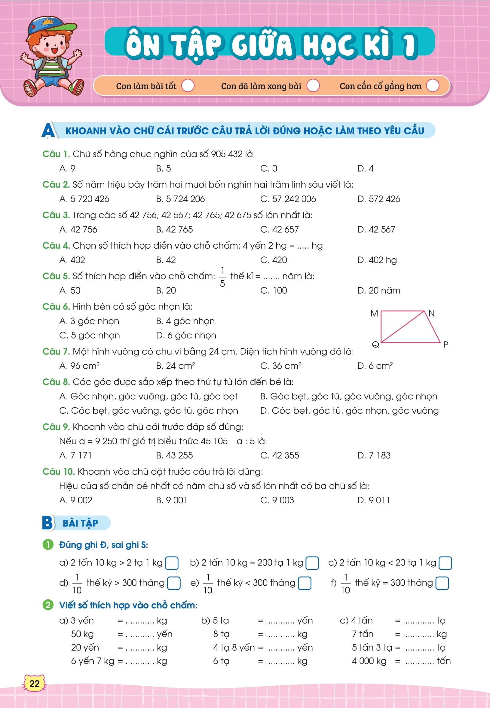 Đặc biệt, sau mỗi kì sẽ có bài ôn tập giữa kì và cuối kì giúp con có tài liệu ôn tập cho các kì kiểm tra.