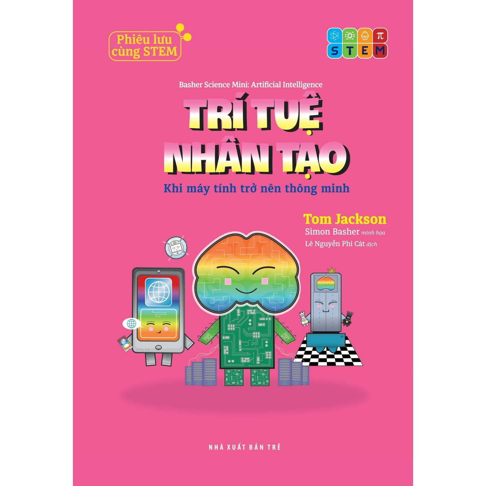 Phiêu Lưu Cùng STEM - Trí Tuệ Nhân Tạo - Khi Máy Tính Trở Nên Thông Minh Cuốn sách này sẽ đưa các bạn vào một cuộc hành trình đầy thú vị, gặp gỡ những trí tuệ nhân tạo (AI) thông minh nhất, từ những cỗ máy cổ xưa đến những siêu máy tính hiện đại. Khám phá cách mà AI hoạt động, làm thế nào chúng giúp chúng ta giải quyết những vấn đề phức tạp và thậm chí còn có cơ hội tưởng tượng mình là một AI. Với cách kể chuyện đơn giản, dễ hiểu và những hình ảnh sinh động, “Trí tuệ nhân tạo – Khi máy tính trở nên thông minh” giúp bạn hiểu rõ hơn về AI và những ứng dụng tuyệt vời của nó trong cuộc sống. Bộ sách “Phiêu lưu cùng STEM” sẽ đưa bạn vào một hành trình khám phá đầy bất ngờ và thú vị! STEM không còn là thứ khô khan, xa lạ – mà ngược lại, gần gũi, dễ hiểu và… có phần đáng yêu nữa chứ! Bộ sách này không chỉ truyền cảm hứng yêu khoa học mà còn mở ra cả một thế giới sáng tạo dành cho bạn. Các tựa trong bộ: