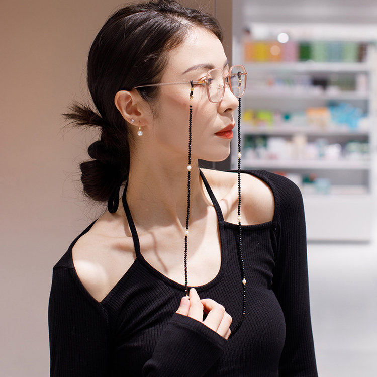 Phụ kiện kính chuỗi đeo mặt nạ đeo khẩu trang dây chuyền đeo kính râm kính cận cườm đen nổi bật