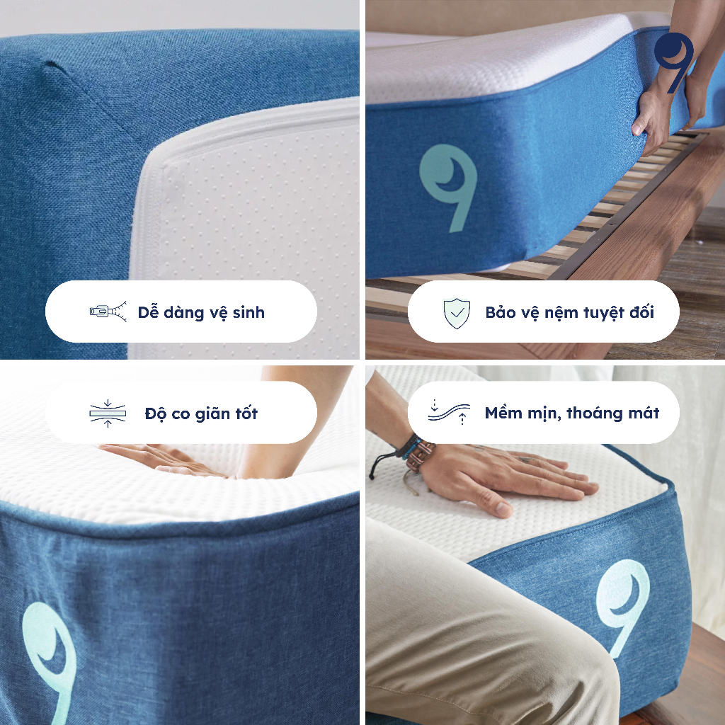 ✩ CHỨC NĂNG: nhằm ngăn các chất bài tiết của cơ thể (mồ hôi, ) thấm trực tiếp vào nệm, giúp nệm luôn sạch sẽ, không có mùi hôi, hạn chế vi khuẩn phát sinh