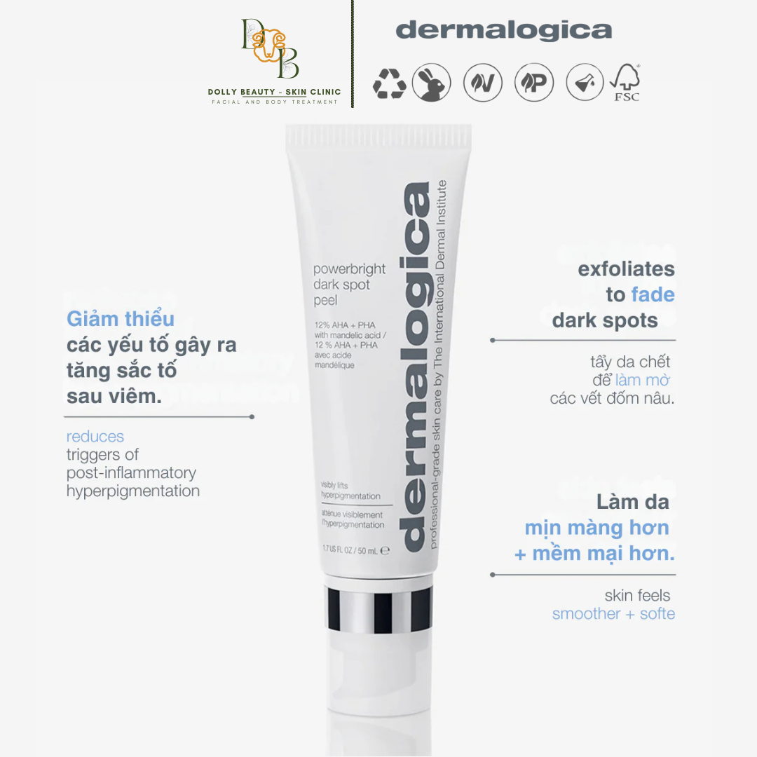 ✨POWERBRIGHT DARK SPOT PEEL cải thiện sắc tố, giúp sáng, mịn, đều màu da của Dermalogica