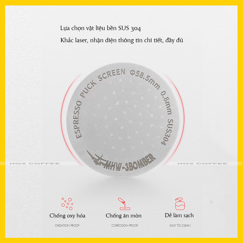 Sau khi nén cà phê thành 1 khối trong giỏ lọc (basket filter), đặt tấm Puckscreen này lên trên mặt cà phê sẻ tránh tình trạng cà phê nổi lềnh bềnh làm bẩn shower screen của máy pha.