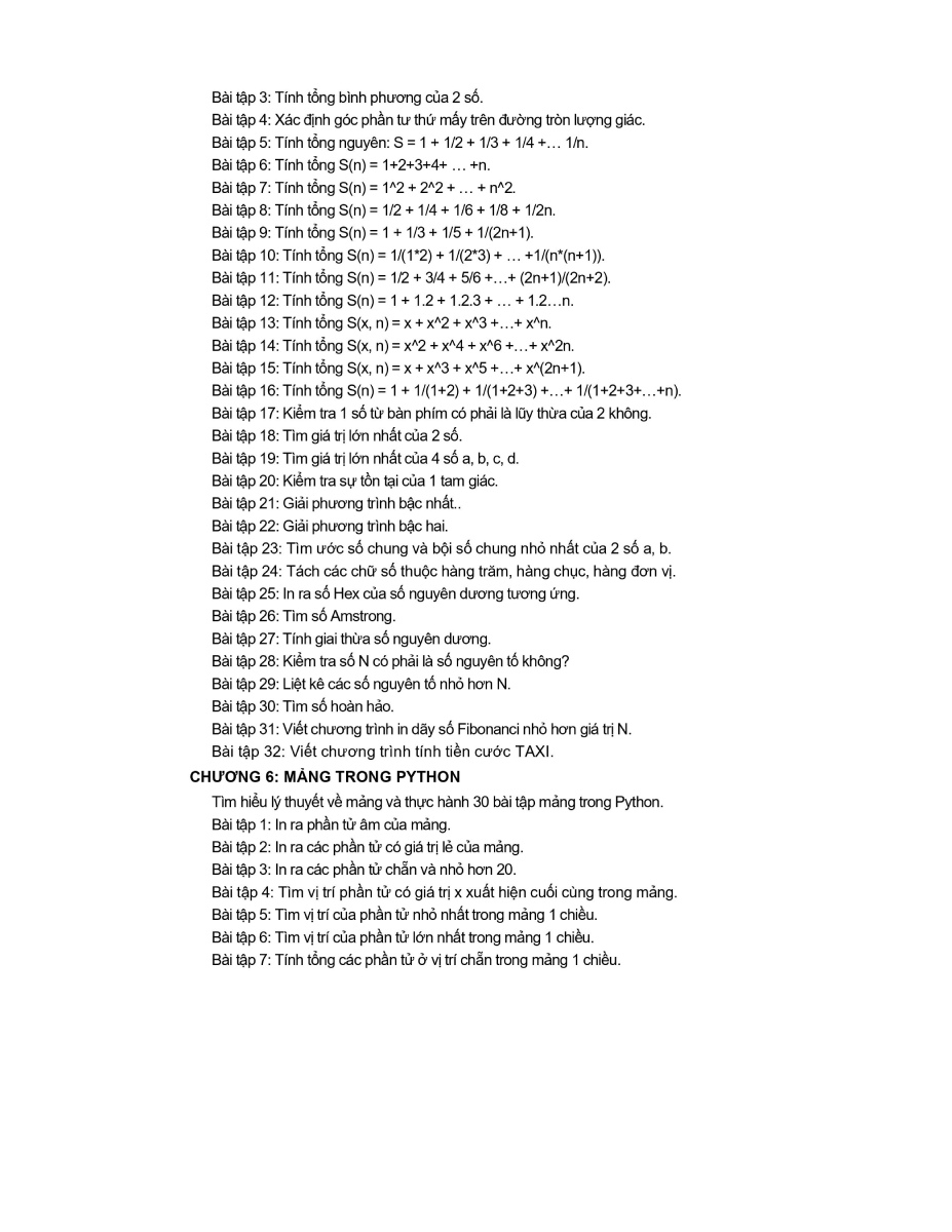 Bài Tập Thực Hành Python (Phần Cơ Bản)   Cuốn sách này giới thiệu đến bạn đọc ngôn ngữ Python, một trong những ngôn ngữ được sử dụng rộng rãi nhất trên thế giới. Phổ