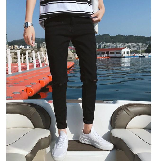✨Quần Jean Đen Trơn Nam Rách Gối SZone