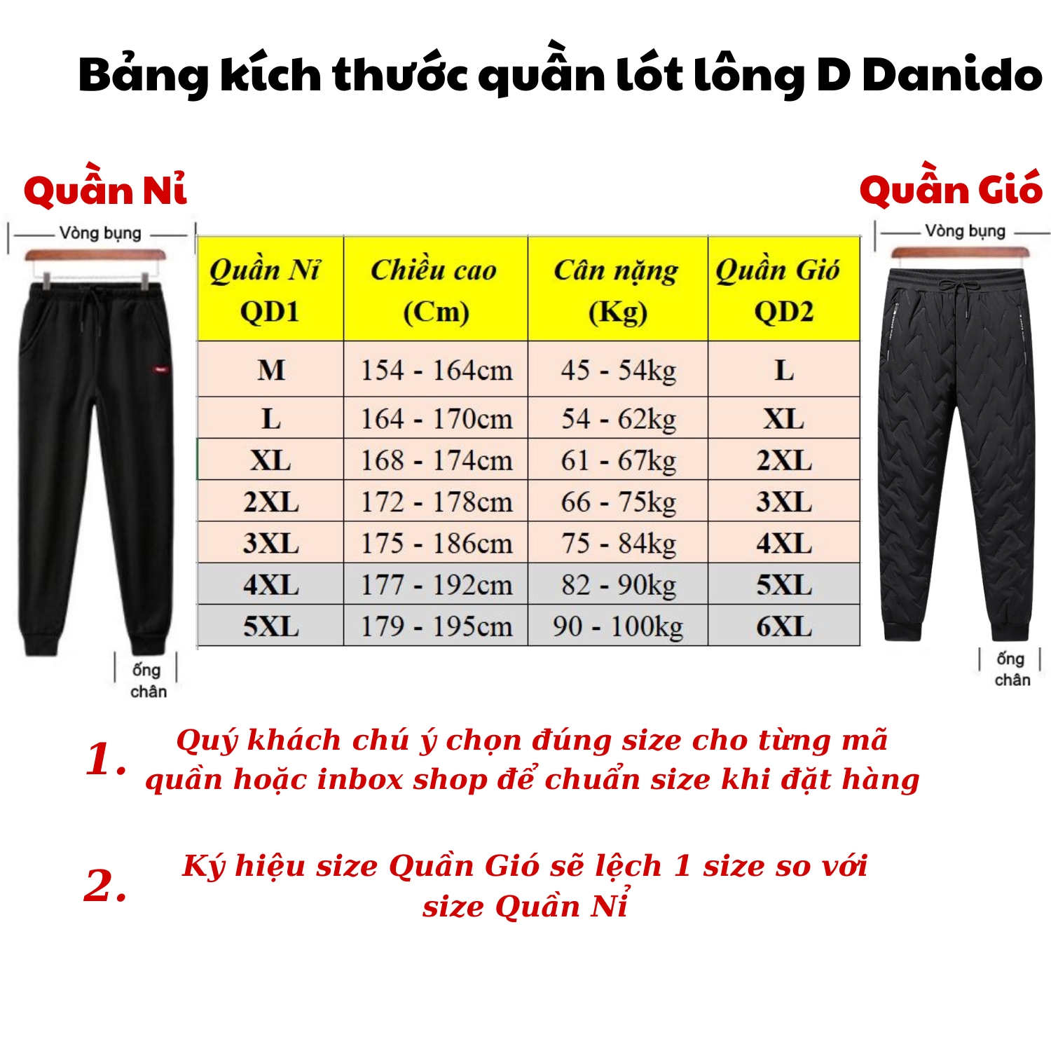 Quần Jogger Nam Thể Thao QD1 Quần Nỉ Nam Lót Lông Cao Cấp Chính hãng D Danido Store Mùa đông tới với những đợt lạnh tăng cường, đặc biệt với những đợt gió mùa ở miền Bắc với cái lạnh thấu xương; việc chọn cho mình những trang phục mùa đông để đảm bảo sức khỏe và thời trang là vô cùng cần thiết.  Không giống với nữ giới, thời trang của Nam giới thường đơn giản và trung tính và khá ít sự lựa chọn; Và chủ yếu các anh các chú thường quan tâm trang phục áo ấm, áo khoác mà ít khi để ý trang phục quần cho đôi chân, phần đông mọi người có xu hướng mặc thêm quần lót giữ nhiệt bên trong nhưng như thế sẽ chật chội và bí gây tổn hại da và sức khỏe.  Giải pháp là chiếc Quần Nỉ Lót Lông Cừu - Quần Jogger Giữ Nhiệt cho Nam các anh có thể không cần mặc thêm các loại quần thun giữ nhiệt bên trong nữa mà vẫn giữ được sự ấm áp dễ chịu, trong những ngày đại hàn. Quần có đủ size cho các anh chọn lựa Ưu điểm Quần nỉ lót lông cao cấp :