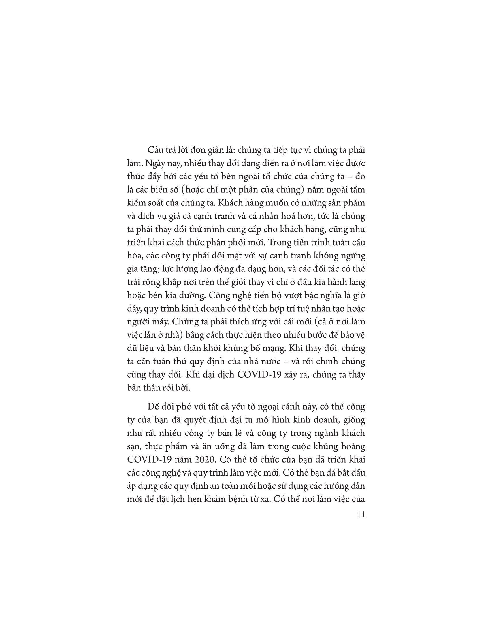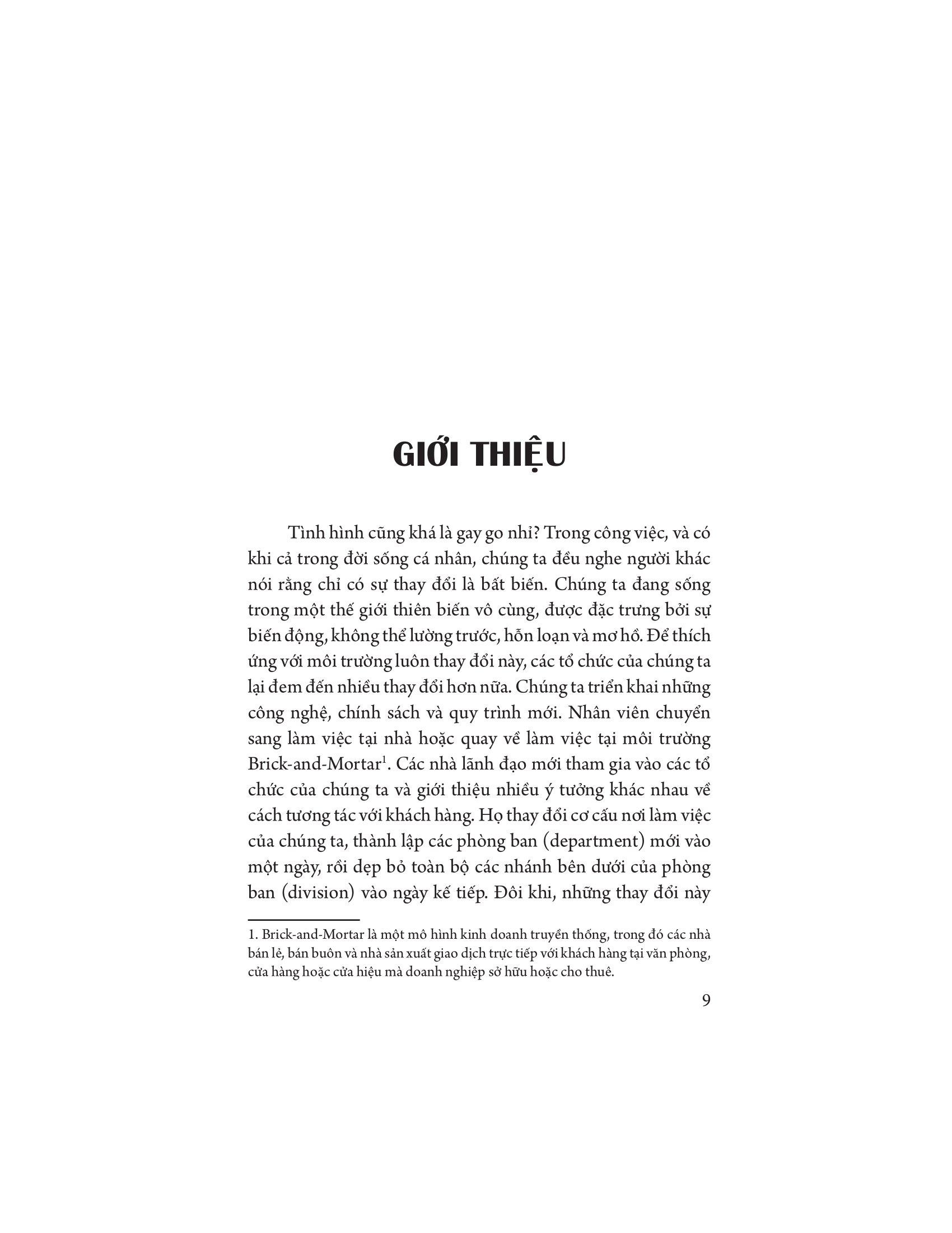 Trong công việc, và có khi cả trong đời sống cá nhân, chúng ta đều nghe người khác nói rằng chỉ có sự thay đổi là bất biến. Chúng ta đang sống trong một thế giới thiên biến vô cùng, được đặc trưng bởi sự biến động, không thể lường trước. Song rất nhiều lần, những nỗ lực thay đổi của chúng ta lại không đạt được mục tiêu mong muốn. Khách hàng rời đi, có khi còn nhiều hơn trước. Năng suất vẫn như cũ, thậm chí còn sụt giảm. Chúng ta cố gắng tìm hiểu chuyện gì đã xảy ra, m.ình đã bỏ qua điều gì, và chúng ta được bảo rằng kết quả không như mong muốn cũng là chuyện thường tình. Đôi khi những thay đổi ấy có hiệu quả, đôi khi lại không.
