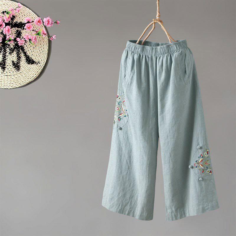 ✨quần ống rộng thêu hoạ tiết - chất đũi xước cực mát (SP5)