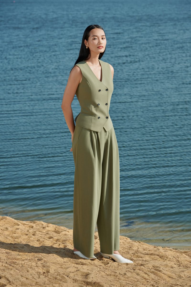 1. Thông tin sản phẩm: VALEN ELOISE - PHONG CÁCH THỜI TRANG CHỈN CHU VÀ CHUYÊN NGHIỆP Áo gile Valen form ôm, phối cùng quần Eloise ống suông cạp cao xếp ly giúp che