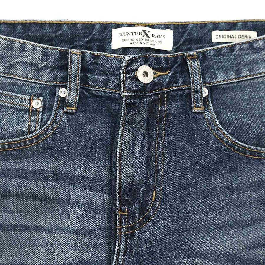 Quần Short Jeans Nam Cao Cấp HUNTER X-RAYS Form Slimfit Thun Mài Sờn Màu Xanh Đậm S36 Đặc điểm nổi bật: Nút được đúc nguyên khối bằng đồng và nổi bật thương hiệu HUNTER X-RAYS