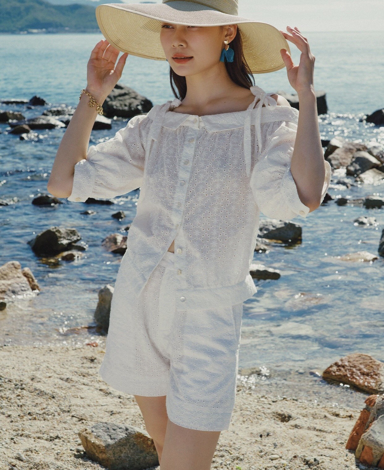 Trẻ trung và năng động với set đồ quần shorts cotton thêu trắng phối áo croptop đồng bộ mang phong cách trẻ trung, năng động và nữ tính.