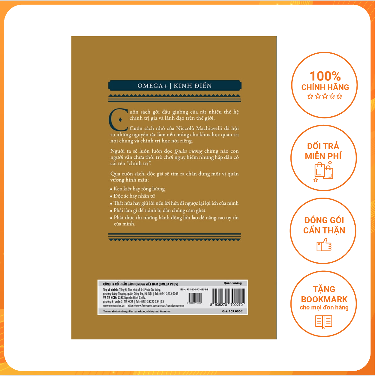 Mua tại TiktokCUỐN SÁCH GỐI ĐẦU GIƯỜNG CỦA RẤT NHIỀU THẾ HỆ CHÍNH TRỊ GIA VÀ LÃNH ĐẠO TRÊN THẾ GIỚI. Chỉ trong một cuốn sách nhỏ của Machiavelli đã hội tụ những nguyên tắc làm nền móng cho khoa học quản trị nói chung và chính trị học nói riêng. Người ta sẽ luôn luôn đọc Quân vương chừng nào con người vẫn chưa thôi trò chơi nguy hiểm nhưng hấp dẫn có cái tên “chính trị”.Qua cuốn sách, độc giả sẽ tìm ra chân dung một vị quân vương hình mẫu: • Keo kiệt hay rộng lượng • Độc ác hay nhân từ • Thất hứa hay giữ lời nếu lời hứa đi ngược lại lợi ích của mình • Phải làm gì để tránh bị dân chúng căm ghét • Phải thực thi những hành động lớn lao để nâng cao uy tín của mình.