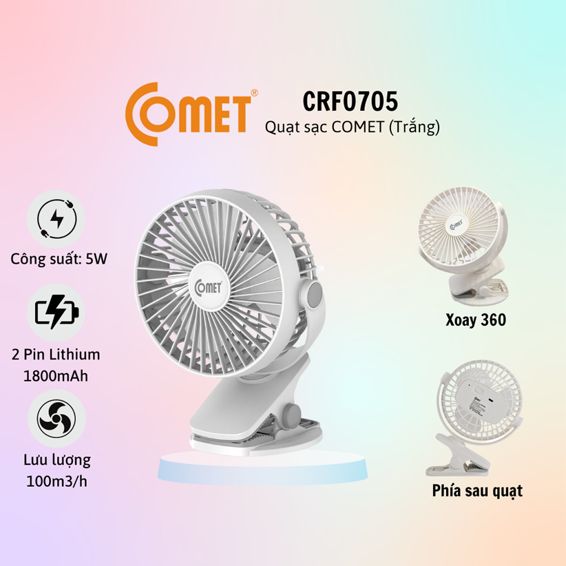 ✨Quạt Kẹp Sạc Mini Tích Điện Comet Xoay 360 Độ CRF0705 (5W) - Hàng chính hãng