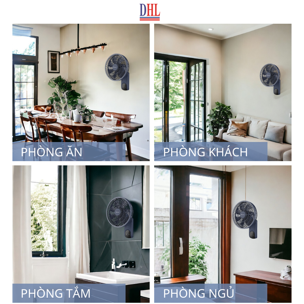 - Quạt treo tường, màu sắc hiện đại, sang đẹp, hài hòa cho không gian sống như: gia đình hoặc các khu vực phòng, sảnh công cộng… - 3 cánh quạt với đường kính cánh quạt