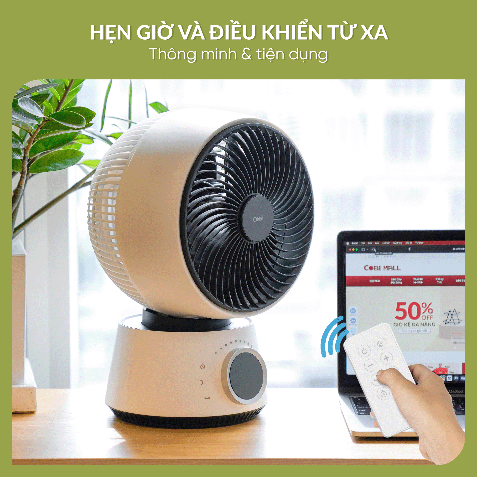 ✨Quạt tuần hoàn không khí để bàn 8" COBI - Điều khiển từ xa, Hẹn giờ, Xoay tự động 3D 360° - Hàng nhập khẩu chính hãng
