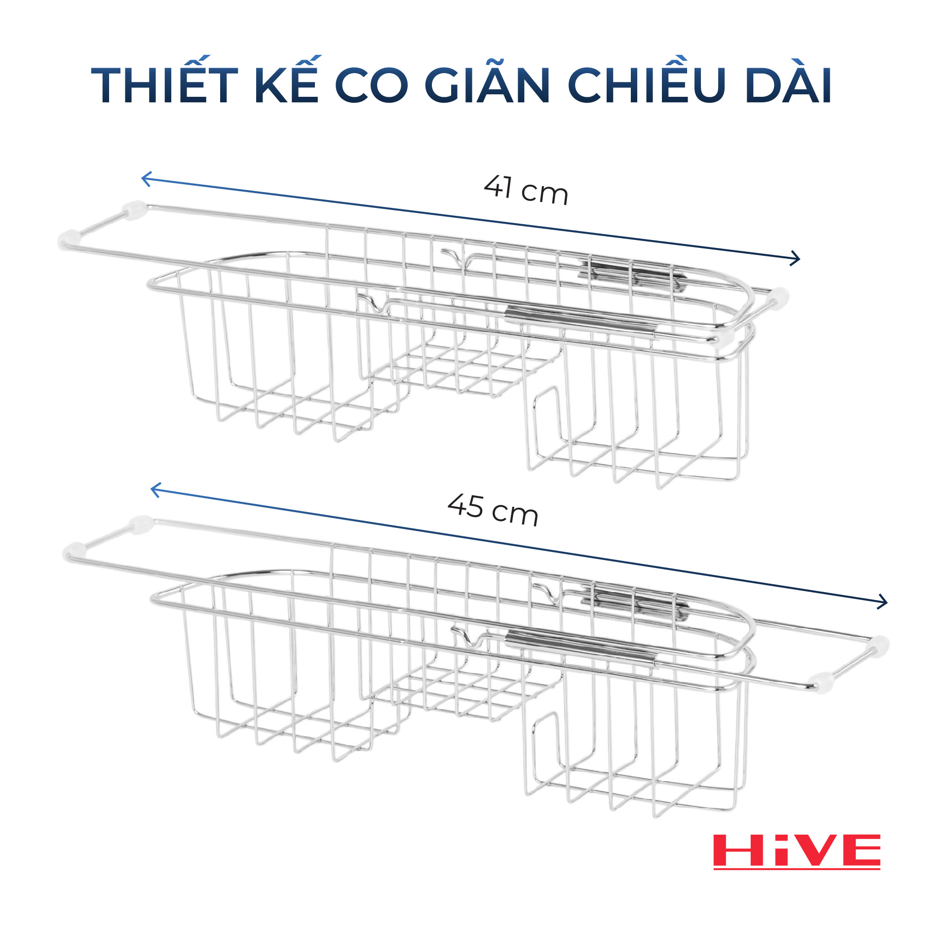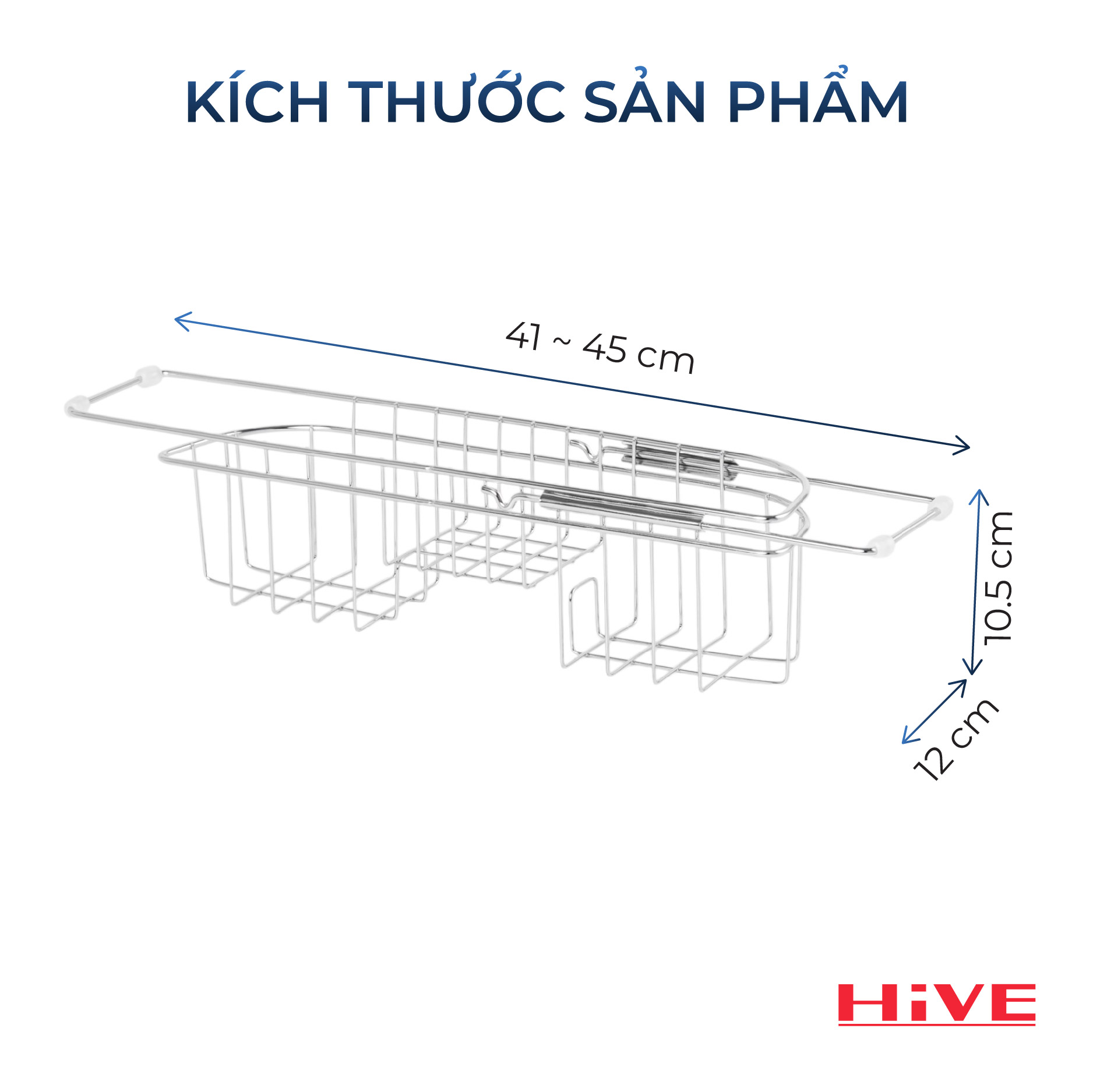 THÔNG SỐ KỸ THUẬT Rổ đựng dụng cụ rửa chén gác bồn HiVE small rack inox Cao Cấp KÍCH THƯỚC SẢN PHẨM (DXRXC): 41 - 45 × 12 × 10.5(cm)