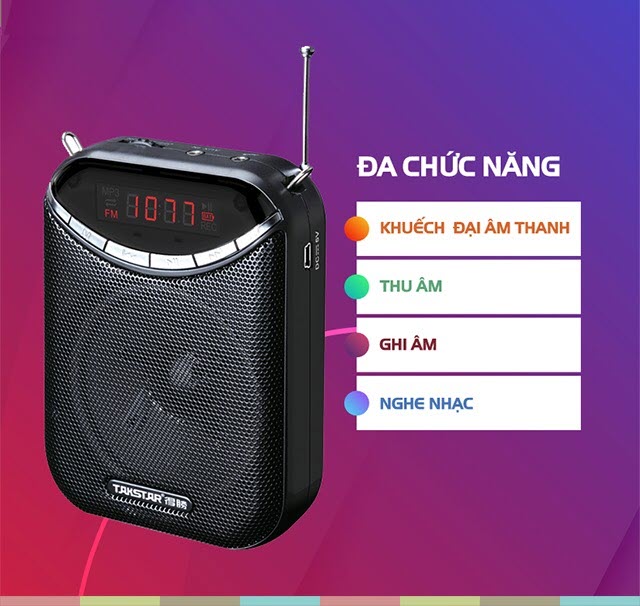 - Máy trợ giảng Shidu SD-S258 với thiết kế nhỏ gọn, công suất lớn 10W kết hợp hệ thống loa kép cho giọng nói trung thực, thời gian sử dụng lên đến 15 giờ phù hợp cho