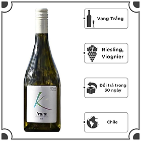 Rượu vang Korta K IruneChai vang này pha trộn nho Riesling và Viognier tạo nên hương vị cân bằng, ngọt nhẹ, dễ thưởng thức. Hương vị rượu có sự tinh tế từ sự kết hợp của 2 giống nho danh tiếng Riesli...
