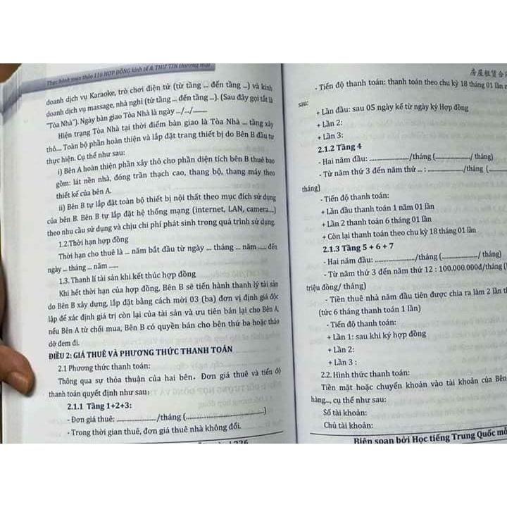 Sách biên soạn theo Luật Việt Nam, theo mô thức khuôn khổ hợp tác Việt Trung, đầy đủ Trung ( có phiên âm) , tiếng Việt, từ vựng và cấu trúc!