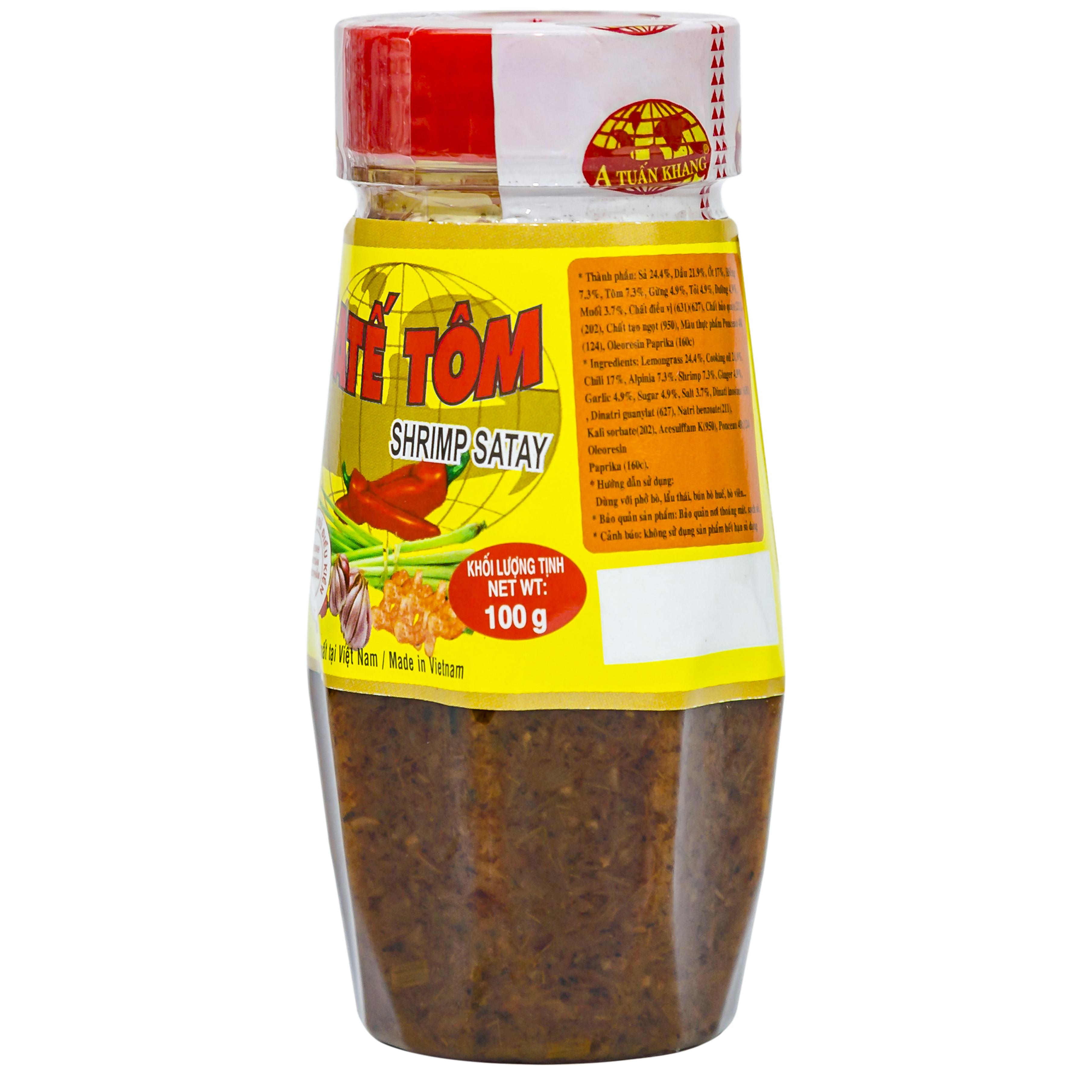 CHI TIẾT SẢN PHẨM 1. Khối lượng: 100g 2. Thành phần: Dầu ăn, ớt, nước, đường, tôm khô (10%), tỏi, sả, muối ăn,… 3. Loại chai: PET 4. Quy cách đóng gói: 72 chai/thùng 5.