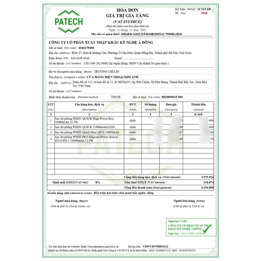 Tem/thông tin xuất xứ của NHÀ PHÂN PHỐI CHÍNH THỨC DUY NHẤT – PATECH JSC,.