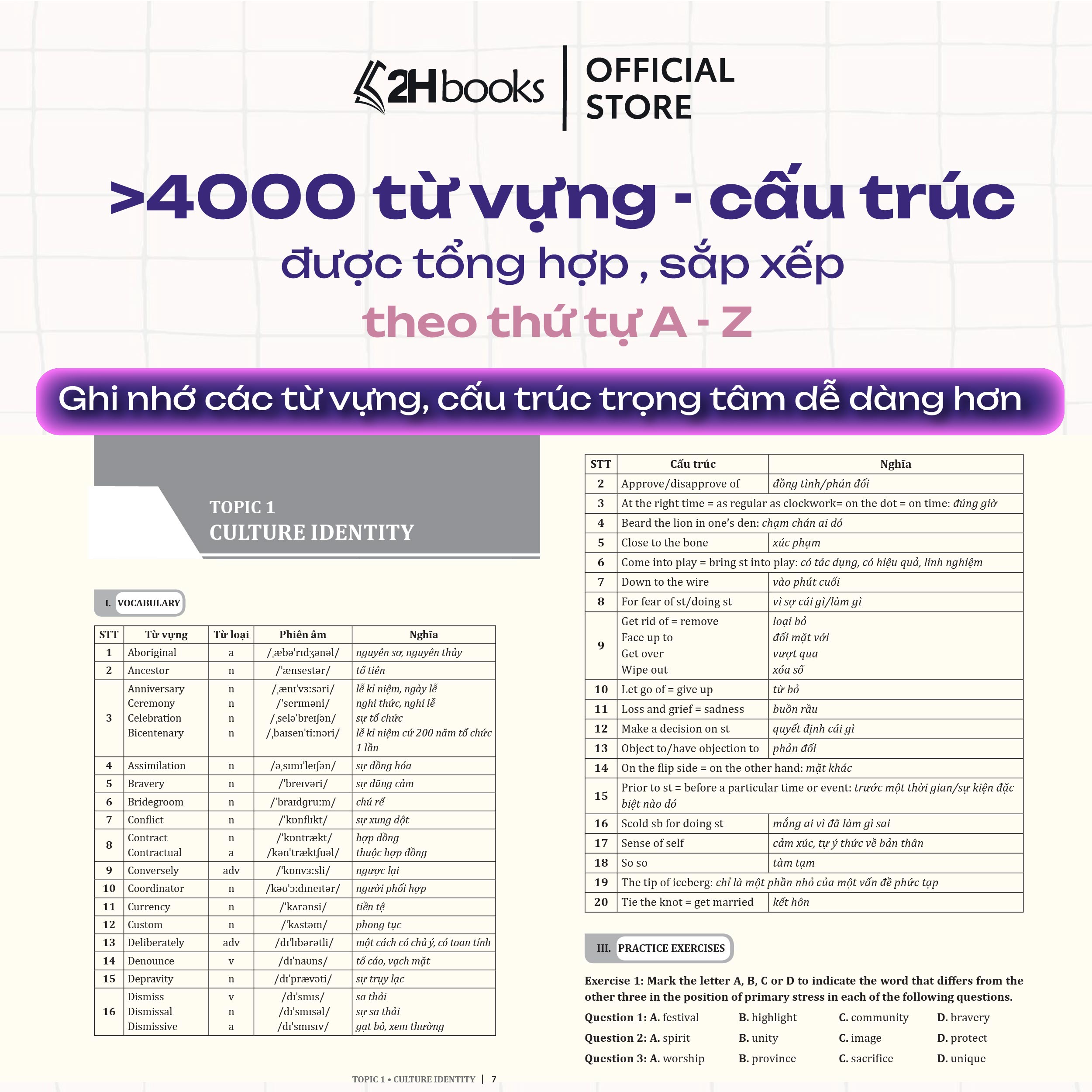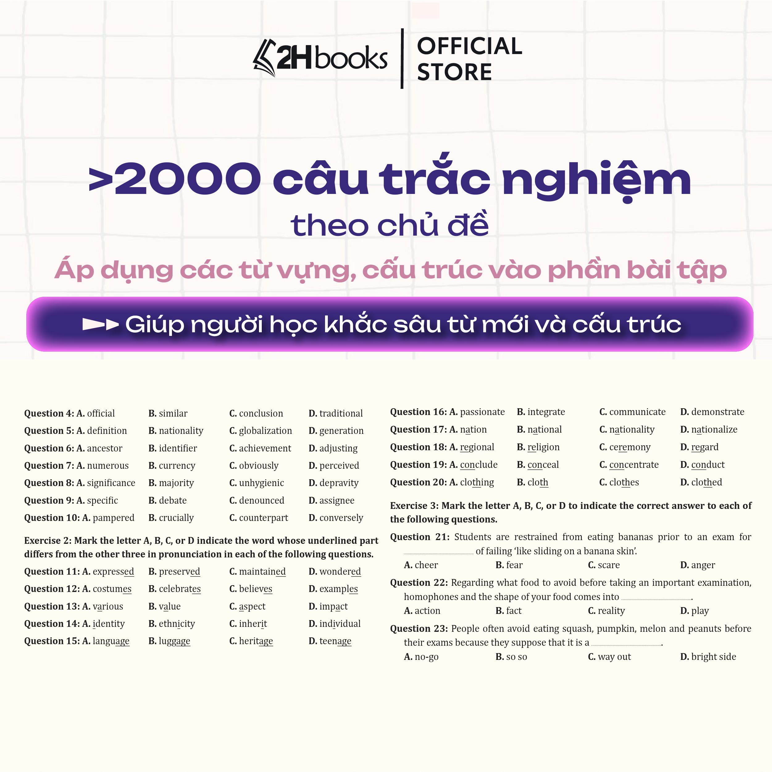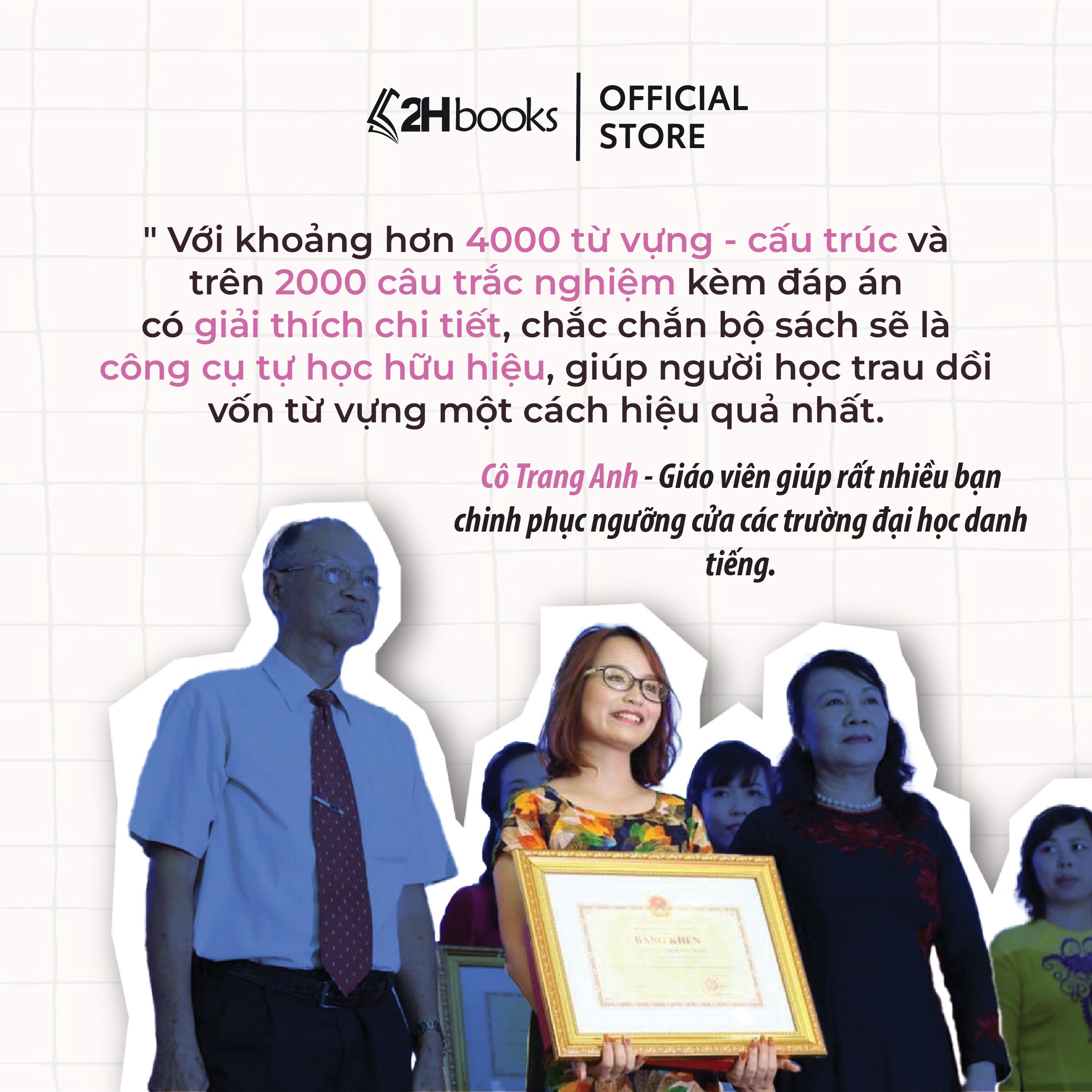 Với khoảng hơn 4000 từ vựng – cấu trúc và trên 2000 câu trắc nghiệm kèm đáp án có giải thích chi tiết, chắc chắn bộ sách sẽ là công cụ tự học hữu hiệu, giúp người học trau dồi vốn từ vựng một cách hiệu quả nhất.