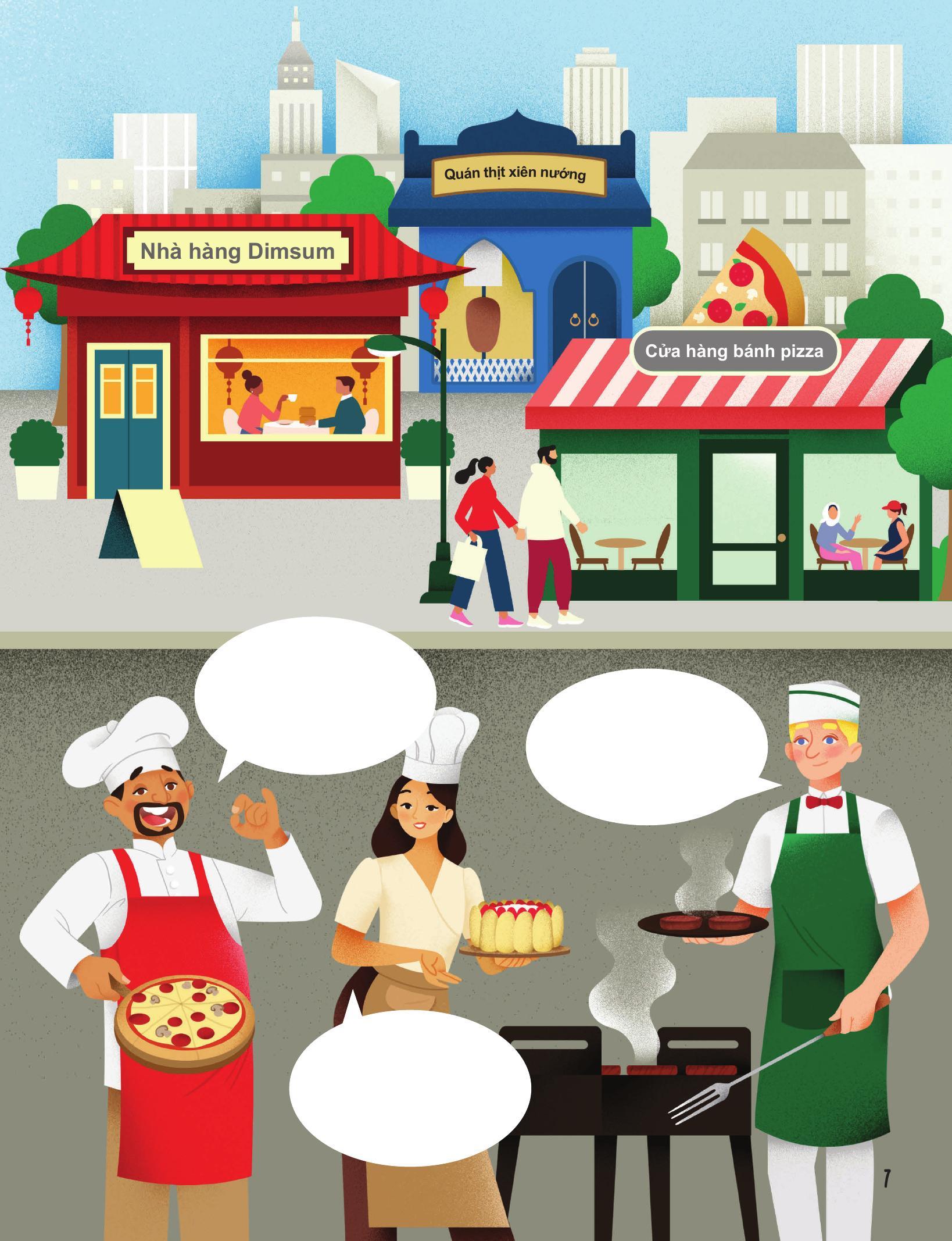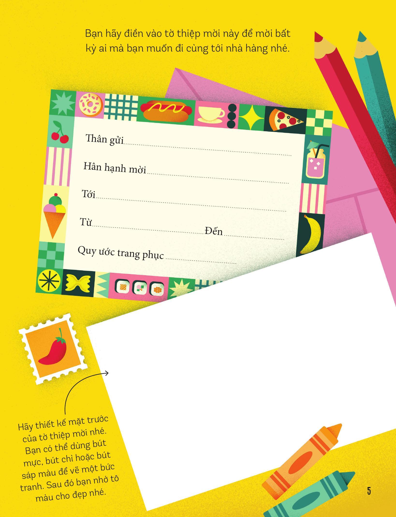 - Ở nhà hàng Đa dạng trò chơi từ tô màu, viết, vẽ giải đố, nhanh tay nhanh mắt, tìm món đồ thất lạc, sáng tạo áp phích quảng cáo du lịch, vui chơi,... Mở rộng hiểu biết qua từng trò chơi trên giấy: tuyến đường sắt dài nhất, những điều cần lưu ý khi đi máy bay, khám phá các loại ô tô, tự lên thực đơn cho bữa ăn của m.ình,...