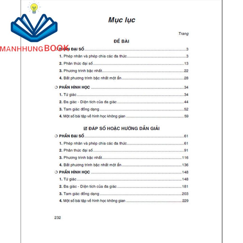 Mua tại TiktokCông ty Học Liệu Sư Phạm giới thiệu: 500 Bài Toán Chọn Lọc Lớp 8 Cuốn sách 500 Bài Toán Chọn Lọc Lớp 8 được biên soạn theo chuẩn kiến thức, kỹ năng chương trình sách giáo khoa lớp 8. Sách tổng hợp 500 bài toán dựa theo chương trình học để các em rèn luyện kỹ năng giải bài tập một cách hiệu quả. Đây là tài liệu tham khảo hữu ích để các em học tốt bộ môn này.