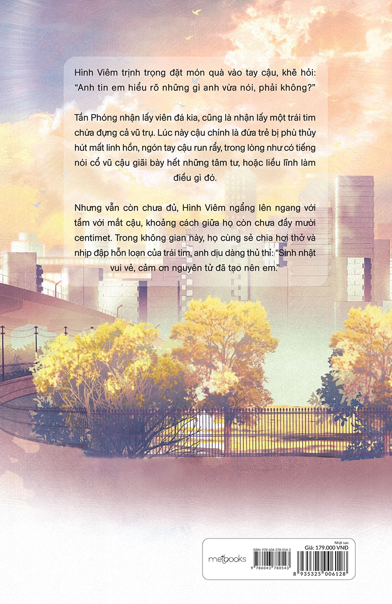 Nhưng vẫn còn chưa đủ, Hình Viêm ngẩng lên ngang với tầm với mắt cậu, khoảng cách giữa họ còn chưa đầy mười centimet. Trong không gian này, họ cùng sẻ chia hơi thở và nhịp đập hỗn loạn của trái tim, anh dịu dàng thủ thỉ: “Sinh nhật vui vẻ, cảm ơn nguyên tử đã tạo nên em.”