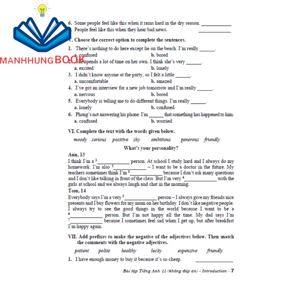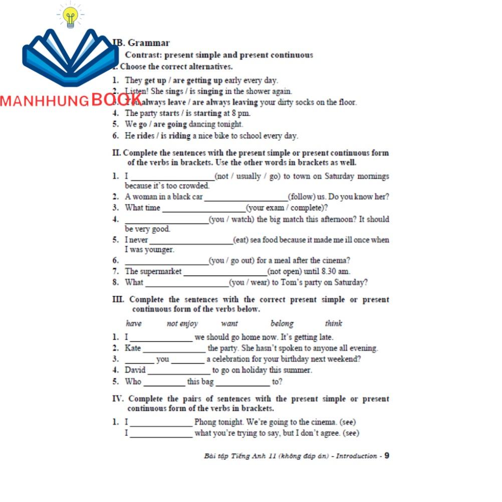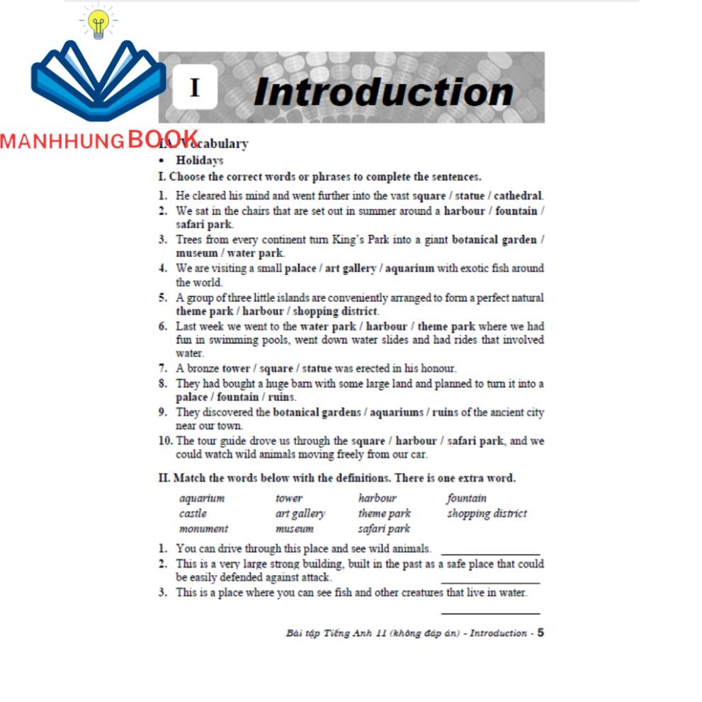 Các bài tập trong Bài tập Tiếng Anh 11 – Không đáp án đa dạng, phong phú, bám sát từ vựng, ngữ pháp và chủ đề trong sách giáo khoa tiếng Anh theo chương trình mới.