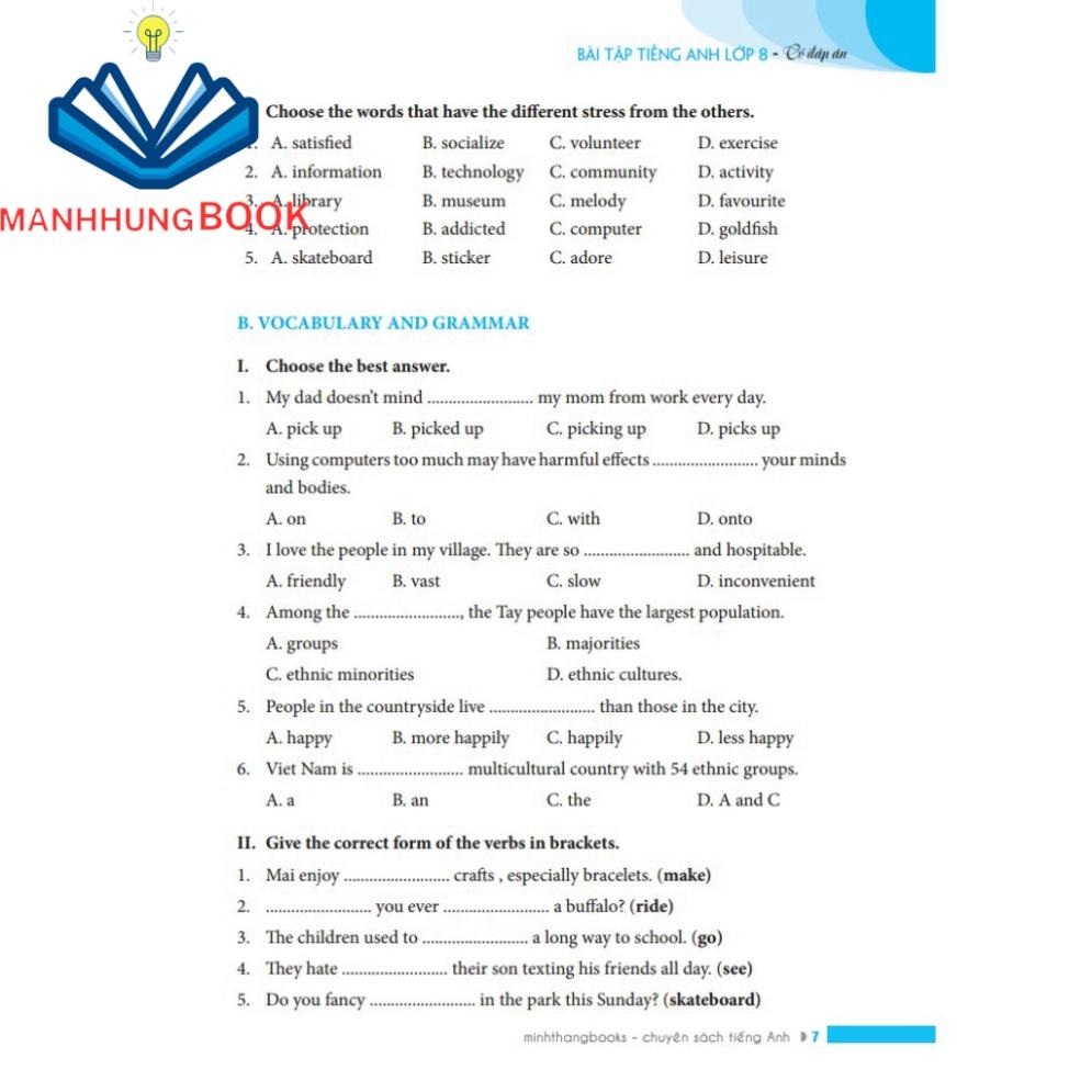 Cuốn sách Bài tập Tiếng Anh lớp 8 được biên soạn theo chủ điểm quen thuộc với học sinh Trung học cơ sở .
