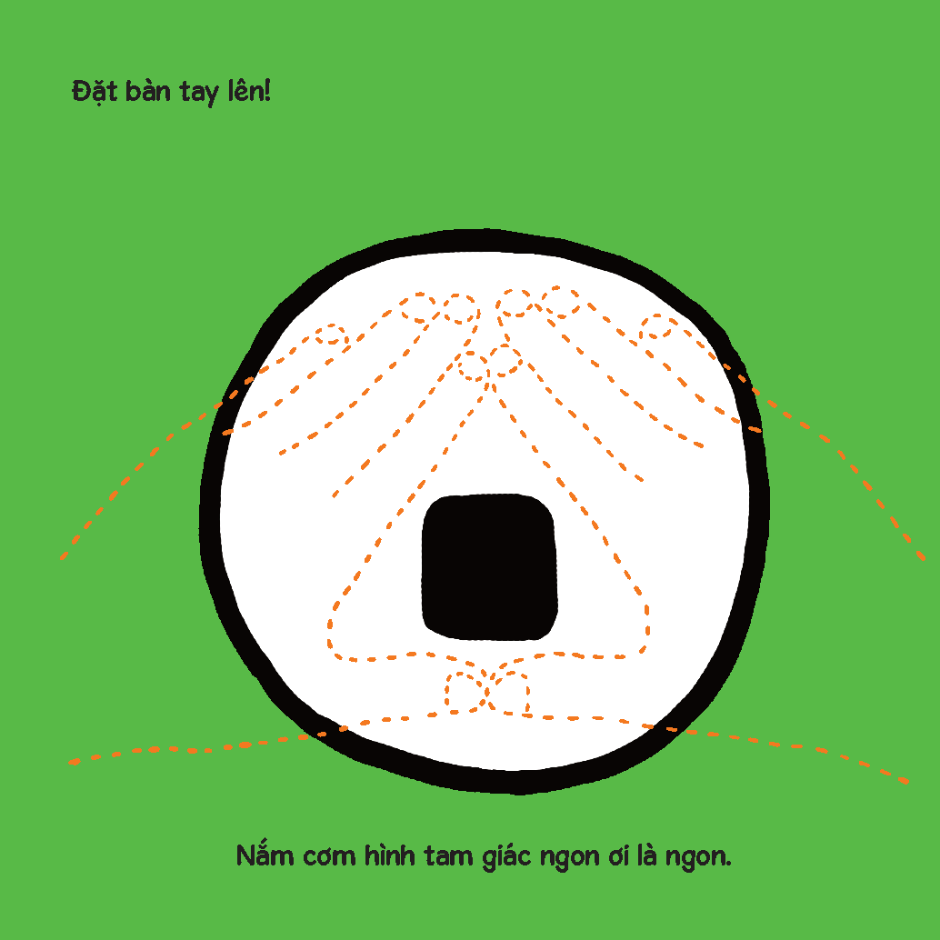 Giới thiệu tác phẩm Chỉ cần đặt bàn tay nhỏ xinh lên quyển sách một cái Pong! Bé sẽ bắt đầu một trò chơi thú vị! Bàn tay của bé hóa thành cơm nắm, thành mái tóc dài, Có rất nhiều trò chơi bằng tay mới lạ chờ bé khám phá đấy! Đây là quyển Ehon chơi cùng bàn tay mang đến cảm giác mới, tạo ra sự tương tác cho bố mẹ và con.