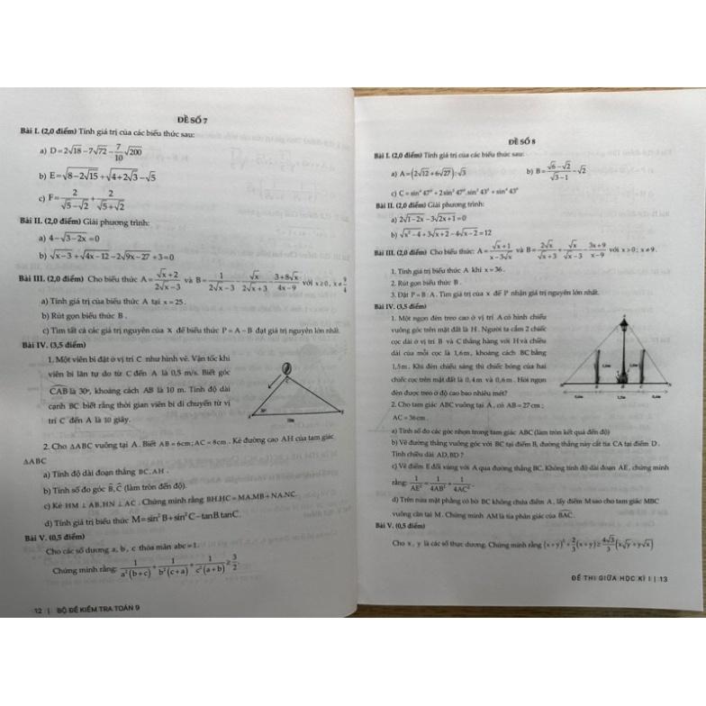 ✨Sách - Bộ đề kiểm tra Toán 9 ( Theo định hướng phát triển năng lực)
