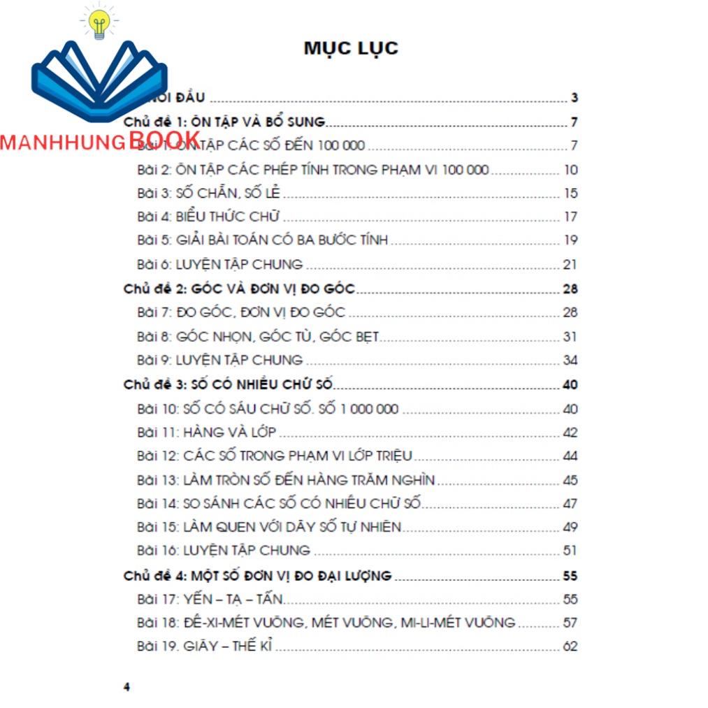 Quyển sách “Bồi dưỡng Toán lớp 4 – Tập 1” được biên soạn theo chương trình giáo dục phổ thông mới, nhằm giúp các em học sinh rèn luyện, củng cố kiến thức, khám phá và phát triển năng lực. Sách cũng nhằm giúp quý thầy, cô có thêm tài liệu tham khảo; giúp quý phụ huynh có tài liệu để hướng dẫn con em học tốt môn Toán ở nhà.